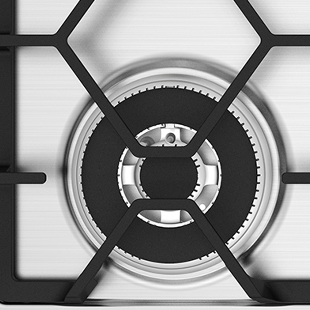 Unico en el mercado, novedoso quemador Triple Ring. Enciende de manera independiente un anillo de flama o los tres al mismo tiempo para un calentamiento rápido y uniforme.