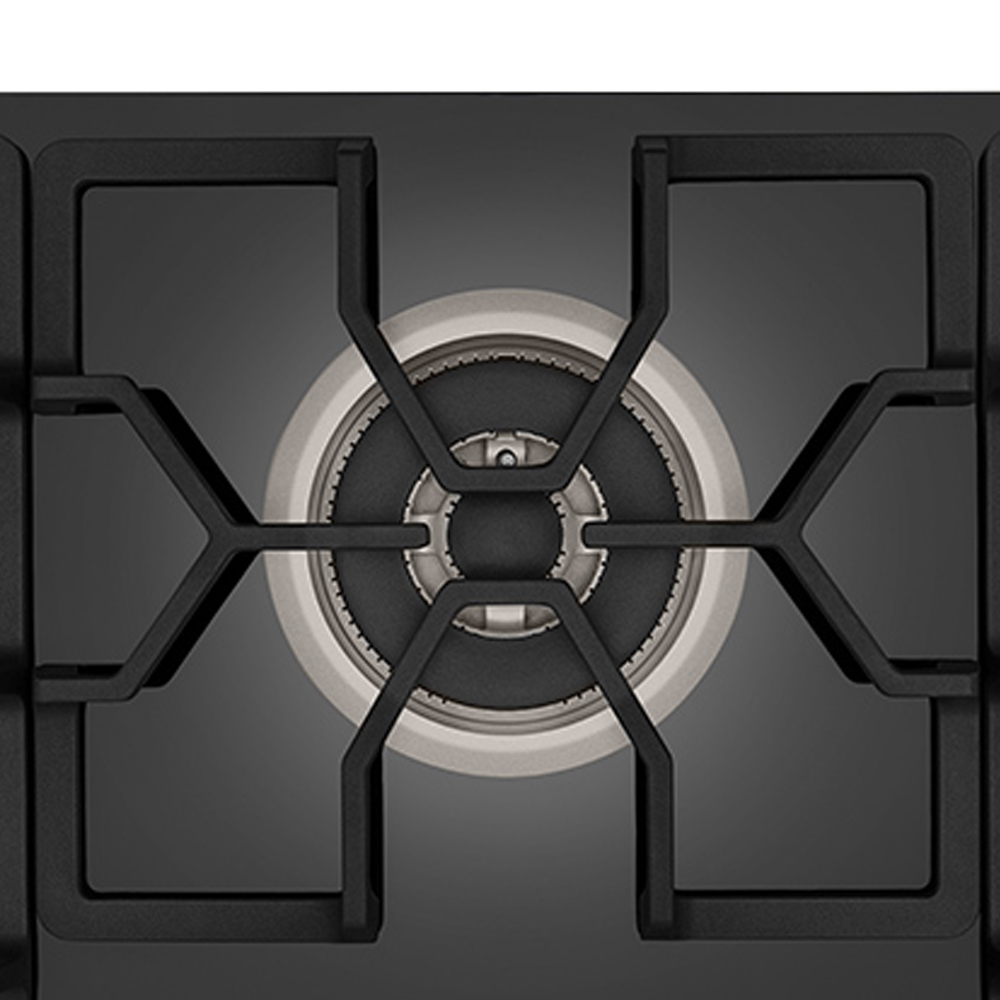 Único en el mercado, novedoso quemador triple ring. Enciende de manera independiente un anillo de flama o los tres al mismo tiempo para un calentamiento rápido y uniforme.