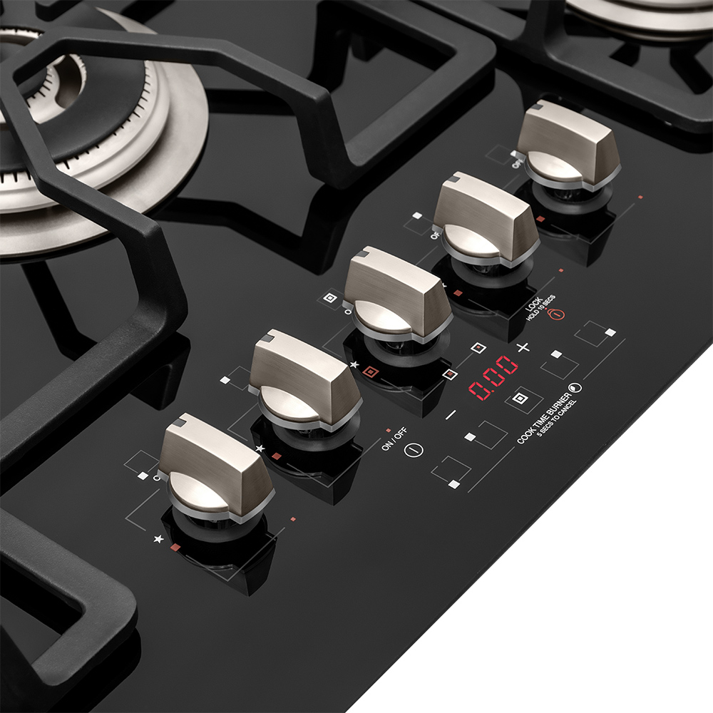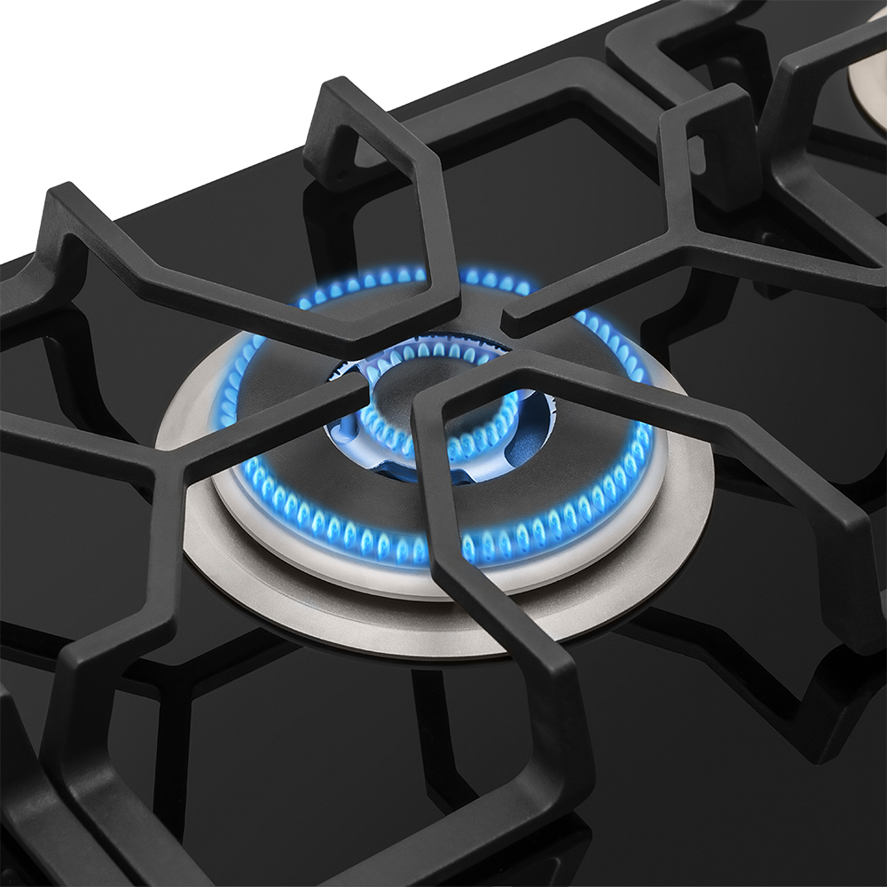 Estilo innovador de máxima resistencia y mayor durabilidad con elegante cubierta en vidrio templado. Sensor que cierra el paso de gas al detectar ausencia de flama