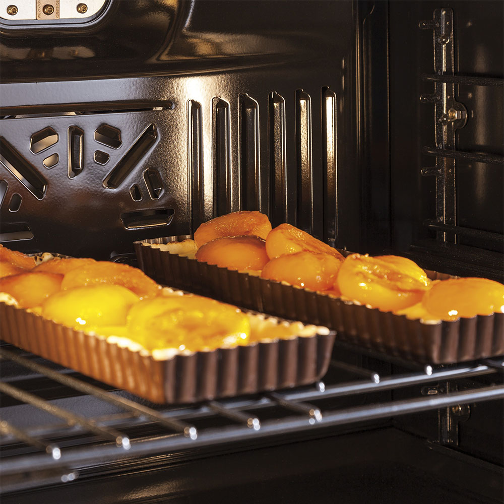 Canaliza el aire caliente desde la parte superior del horno y lo hace circular alrededor de los alimentos por todos lados para hornear y asar de manera perfectamente uniforme.