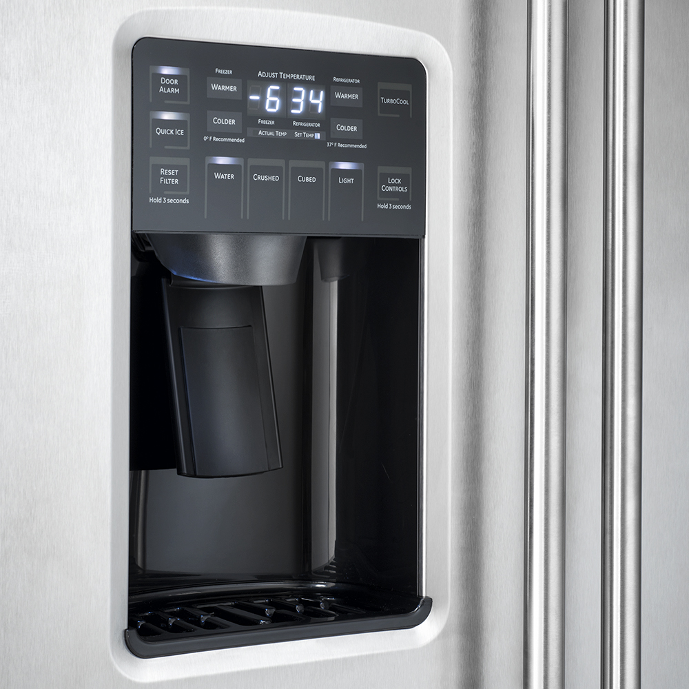 Controla fácilmente todas las funciones del refrigerador en un simple click. Controla fácilmente todas las funciones del refrigerador en un simple click: Control de temperatura, Turbo Cool, Alarma, Bloqueo de panel y Quick Ice.